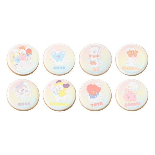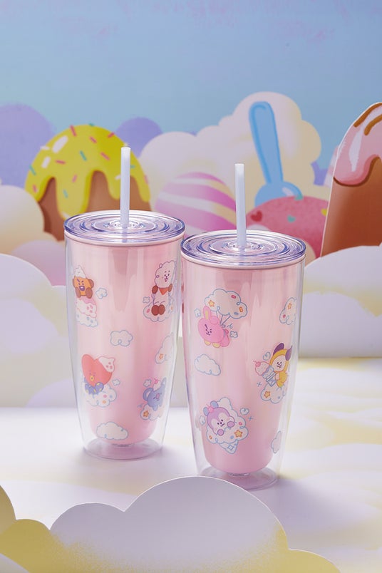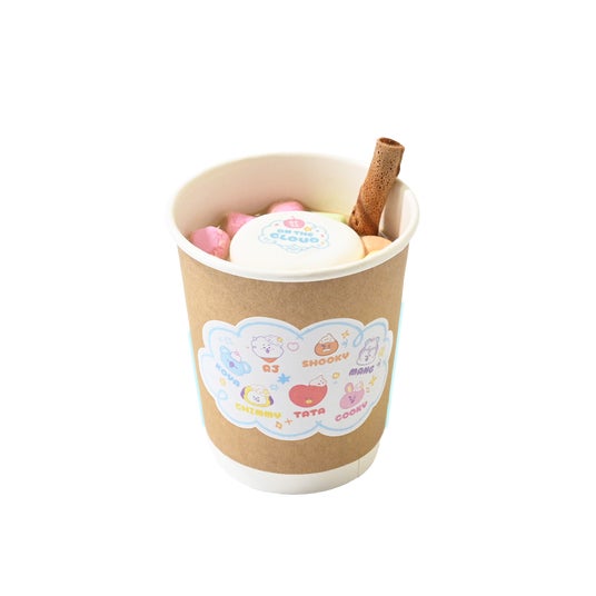 新シリーズ「On the Cloud」の世界観で、ふわふわしたかわいいイメージのオリジナルフードとドリンクが楽しめる、期間限定のスイーツワゴンです。メニューを1品お買い上げ毎に、「On the Cloud」デザインの搭乗券風カード「BT21 UNIVERSTAR AIRLINESボーディングパスカード(全8種)」を1枚プレゼント。全8種のカードのうち、4枚ずつ裏面のイラストを合わせると一つのアートになる、集めるほど楽しいカードです。