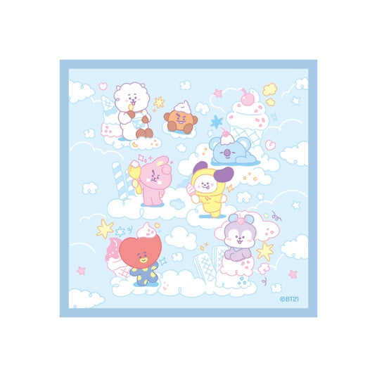 各販売先にて2,200円(税込)以上お買い上げのお客様には「On the Cloud」スペシャルノベルティ「BT21 IDステッカー(全7種)」または「BT21 UNIVERSTAR AIRLINES ボーディングパスカード(全8種)」を1枚プレゼント(それぞれランダムでお渡し。なくなり次第終了。)