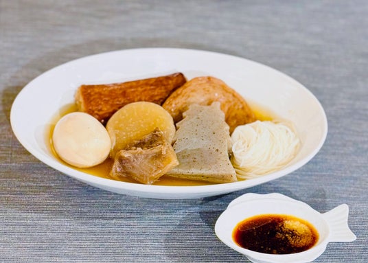 「静岡おでん祭2024」限定姫路和牛入り姫路おでん。そうめん(揖保乃糸)をあしらった特別仕様