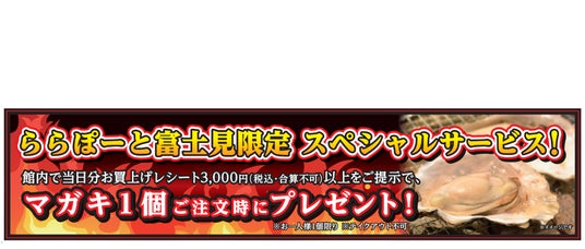 ご提示で、マガキ1個をご注文時にプレゼントいたします。