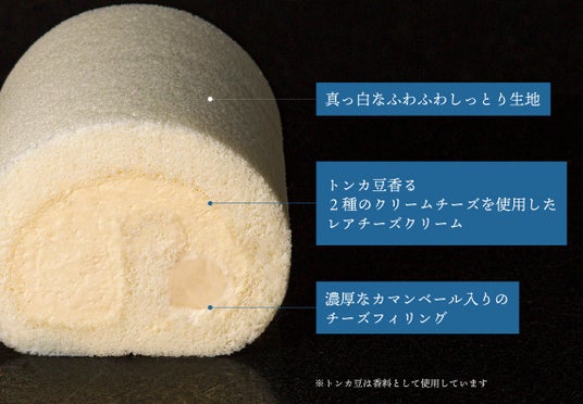 トンカ豆が香るレアチーズクリームとカマンベール入りのフィリングを、ふわふわしっとりの生地で丁寧に巻き上げています。