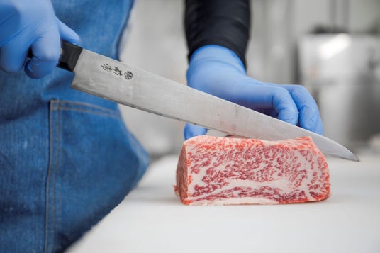 よい人はよい心から川岸畜産では川岸牧場から出荷された但馬牛を全頭買戻すことで門外不出という希少価値を高め、 36ヶ月の肥育でできた美味しく柔らかい肉を、さらに美味しく、柔らかいものにするため 旨味を引き出す寝かし期間と、柔らかさを最大限引き出す切り方にしています。 肉質は部位や肉牛によってそれぞれ異なるため、刃を入れる肉を見て、その都度最適なカットをします。 高い技術を持った限られた職人だけが、包丁を握っています。 選ばれた職人によって手作業で刃が入れられ、肉本来のおいしさと柔らかさを引き出し、お客様のもとへお届けします。