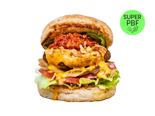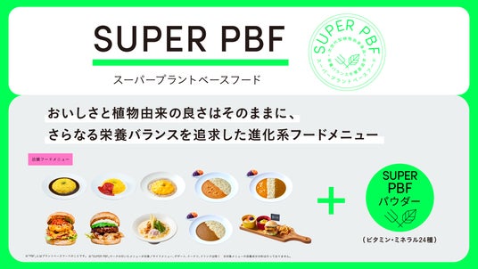 「SUPER PBF」とは、店舗フードメニューのココロ躍るおいしさや植物由来の良さはそのまま、さらなる栄養バランスを追求した、進化系のフードメニューです。植物由来食品を取り入れた食生活で不足しがちな栄養素を含む、24種のビタミン・ミネラルを独自配合した植物由来パウダー「SUPER PBFパウダー」を店舗フードメニューにプラス。今までのメニューと変わらない味わいで我慢も無理もせずにおいしく食べられ、健康的な食生活を目指していくようなメニューをお届けします。
