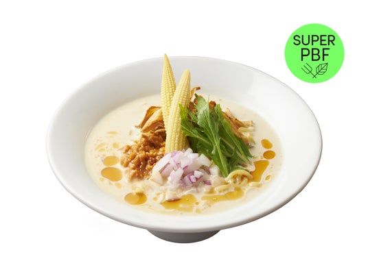 唐辛子と山椒の異なる辛味を合わせたソイミート、ヤングコーン、ごぼうチップス、水菜をトッピング。スープには植物性素材を使用し、罪悪感なくお楽しみいただける一杯です。