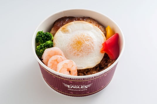 ・商品詳細 太田選手の好物ハンバーグ×和風ソースの組み合わせ!ご飯には太田選手一押しの岡山名物えびめしと宮城県産のごはんを半分ずつ使用した、ボリュームたっぷりの丼です!