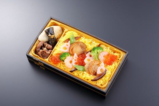 ・商品詳細 幅広い年代に人気のちらし寿司!海老、いくら、ホタテを彩り豊かに使用しました。おかずには昆布と仙台牛の肩肉を使用し語呂合わせでコブカタと遊び心も!