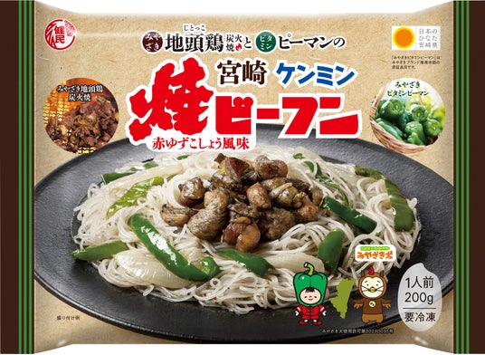 ケンミン食品株式会社(兵庫県神戸市・代表取締役社長:高村祐輝)は、「みやざき地頭鶏(じとっこ)炭火焼とビタミンピーマンの焼ビーフン 赤ゆずこしょう風味」(冷凍商品)を3月1日に弊社通販サイトとケンミン冷凍ビーフン自販機で発売します。