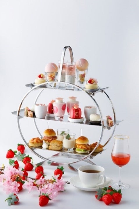 毎年好評を頂いておりますストロベリーアフタヌーンティーの第二弾としてテーマを「~和と桜~」と題し、日本の春の代名詞である桜のエッセンスと和テイストを加えたストロベリーアフタヌーンティーをご用意いたします。ジュレのなかで広がる花びらが美しい「桜ヨーグルトジュレ」は桜風味のヨーグルトブランマンジェとジュレを二層に仕上げた一品、フランス家庭の定番デザート“リ・オ・レ”を日本米でアレンジした「桜のリ・オ・レ」は、日本酒のジュレをあしらい和テイストにツイストしています。気分も高揚する春の香りに包まれるスイーツの数々をご満喫ください。