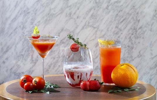 フレッシュのいちごをふんだんに使用したカクテルに、エスプーマのふんわりとしたクリームを一緒にお楽しみいただける「ストロベリークリーム」と、“小さなカプレーゼ“と言う名前のカクテルでトマトとモッツァレラチーズの調和をカクテルグラスに再現した「タイニーカプレーゼ」。ブラッドオレンジを丸ごと1個使用して仕上げた贅沢で濃厚な柑橘系のカクテル「ボンドオレンジ」の3種類のカクテルをご用意いたしました。