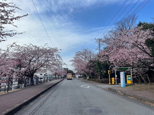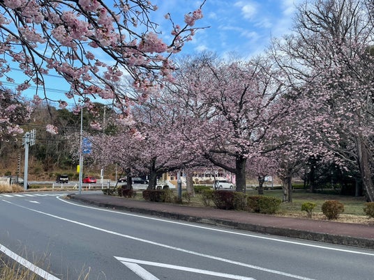 総延長約3kmにわたる伊豆高原の桜並木は伊豆の代表的な桜(ソメイヨシノ)の名所として知られ、多くの観光客で賑わう人気も知名度も高い桜スポットですが、伊豆高原駅から桜並木にかけて、ソメイヨシノより少し早く咲く大寒桜が2月29日現在およそ八分咲きです。