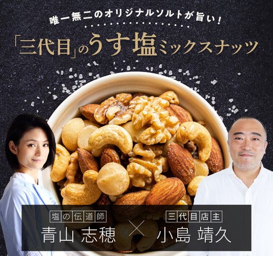 日本で唯一の塩のトータルコーディネーター 青山志穂のブレンドするオリジナルソルトを使用したミックスナッツ