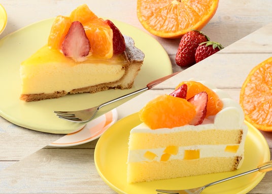 特長:果汁が豊富でみずみずしい「せとか」と、甘みと酸味のバランスがよく、香り高い苺「きらぴ香」。旬の人気フルーツ2種を一度に味わえる季節限定のショートケーキです。ふわふわスポンジでサンドしたヨーグルト風味クリーム(せとかとオレンジのゼリー入り)がせとか&苺をより一層引き立て、軽やかな味わいに仕上げています。