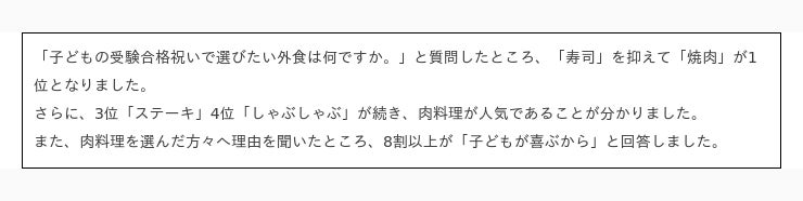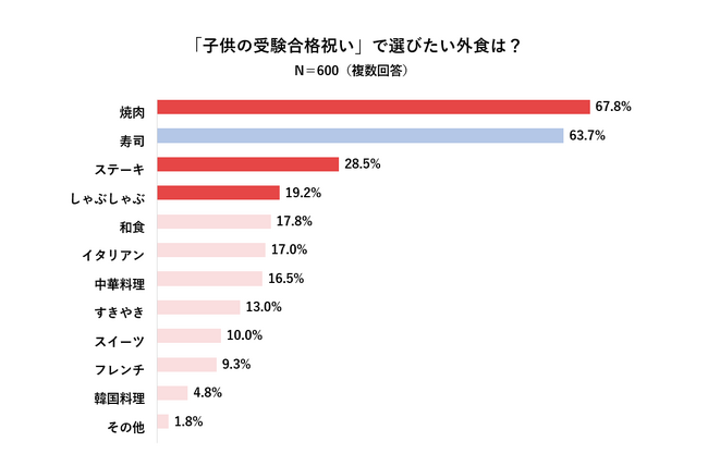 「子どもの受験合格祝い」で選びたい外食、「寿司」を抑えて「焼肉」が1位に