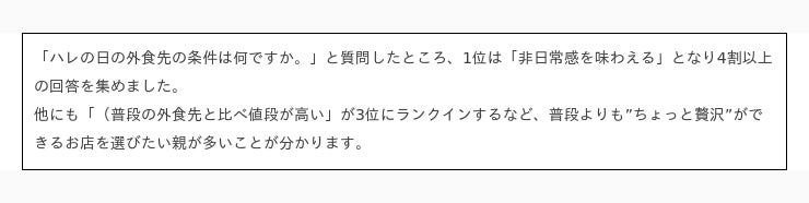 ・ハレの日の外食先の条件、1位は「非日常感を味わえる」