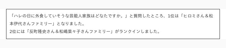 ・ハレの日に外食していそうな芸能人家族、1位は「ヒロミさん&松本伊代さんファミリー」2位は「反町隆史さ