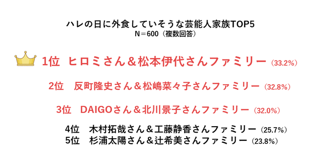 ハレの日に外食していそうな芸能人家族、1位は「ヒロミさん&松本伊代さんファミリー」
