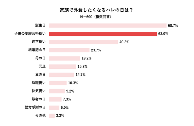 ・家族で外食をしたくなるハレの日、「誕生日」に次いで「子供の受験合格祝い」が2位にランクイン