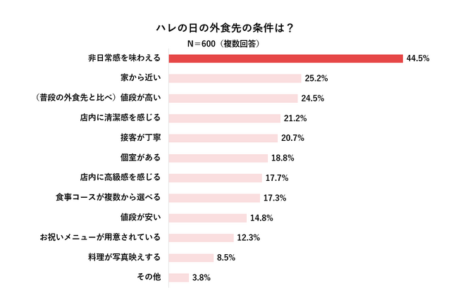 ハレの日の外食先の条件、1位は「非日常感を味わえる」