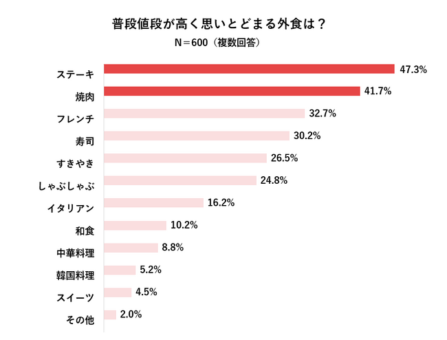 普段値段が高く思いとどまる外食、1位「ステーキ」2位「焼肉」と肉料理が上位に