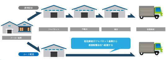 これまで1つの商品をお届けするまでに2~3の経由地が発生していたルートを見直し、設置作業員に直接届けるルート配送を実施。経由地での積み直しが減るため運送破損率もさがり、お客様宅で設置ができなくなるケースを減らすことに成功しました。物流拠点は全国4か所に設け、長距離を避け、中・近距離でお客様の元へお届けできるようにしています。