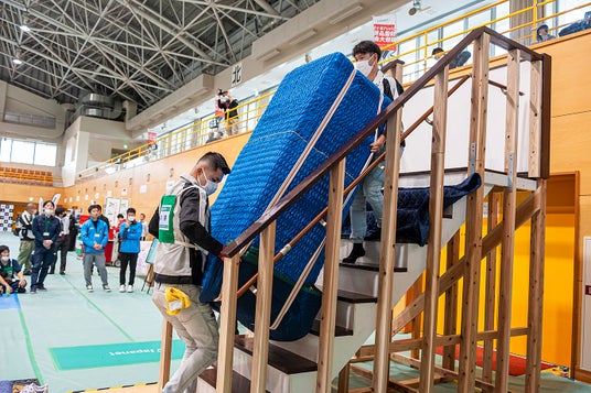 ■大型家電配送の部今回の大会では2名1組で大型冷蔵庫の設置競技を実施しました。搬入経路には回り階段と呼ばれる180°の折り返しがある階段を通す必要があり、非常に高い搬入技術が求められる競技となりました。