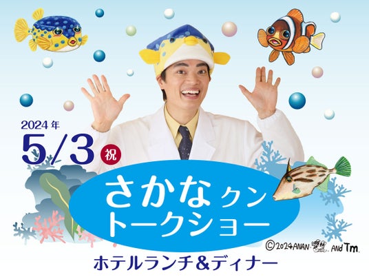 名古屋マリオットアソシアホテル(名古屋市中村区・総支配人 大本茂)では、5月3日(祝)に宴会場「タワーズボールルーム」にて、毎年恒例の「さかなクントークショー~ホテルランチ&ディナー」を開催いたします。
