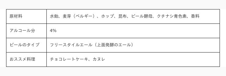 リゾート気分を感じるフルーティーな味わい、カクテルみたいに映える色合い、スパークリングワインみたいに爽やかで飲みやすい、女子受け抜群の新感覚ビールです。低アルコールで苦みがあまりなく、あなたの開放的な時間に寄り添う、リラックスタイムにピッタリ。普段ビールを飲まない方、お酒に弱い方でも美味しくいただけます。おススメの料理は、ガツンとした味わいのもの、例えば濃厚なチョコレートケーキやカヌレにぴったりです。敦賀市の地場産業「おぼろ昆布」の製造過程における端材を隠し味として原料にも使っており、思わぬ栄養分もあるかもしれません。