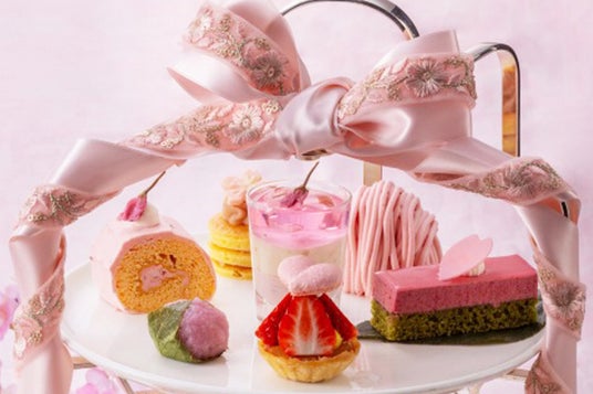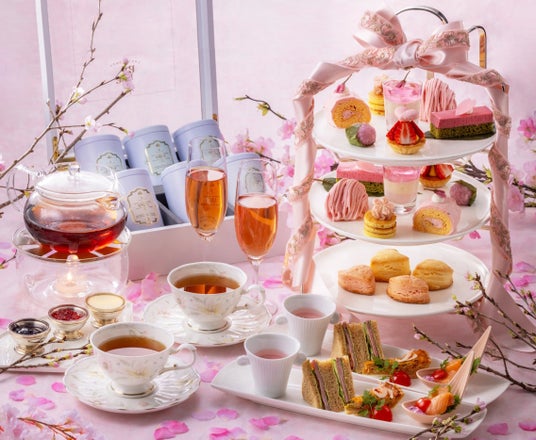 ピンク色のスイーツが目を惹くキュートなアフタヌーンティーセット。モンブランやロールケーキ、タルトなど、パティシエが満開の桜をイメージしてご用意しました。ホテルメイドのスコーンやノンアルコールのロゼスパークリングワインとともに、至福のティータイムをお楽しみください。