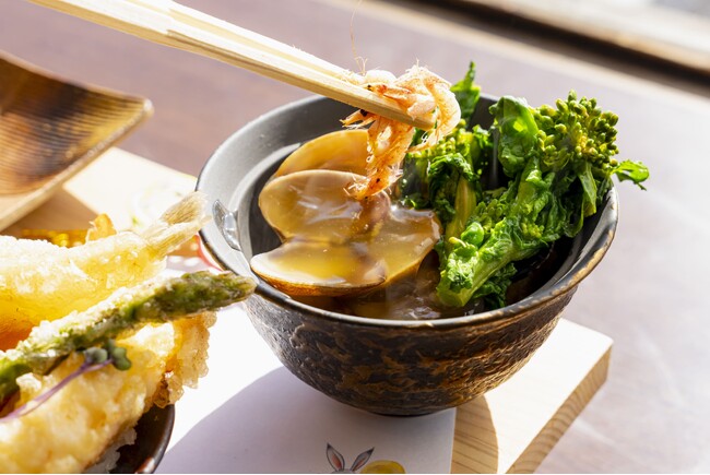 サクッと軽やかな衣と香り豊かな春野菜が相性抜群です。