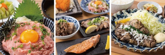 定食は全て、ご飯(大盛無料)・味噌汁・漬物・日替わり小鉢付きとなっており、ボリューム満点!常時提供メニューなのでランチだけではなく、夜ご飯にもぴったり。昼から飲めてお食事も楽しめる、酒場利用・食事利用どちらにも対応するフレキシブルな店舗となっております。