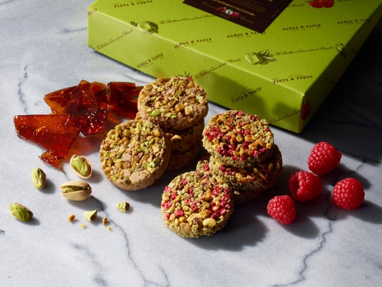 アクセントにカラメルチップをブレンドしたクランチにキャンディングピスタチオを散りばめてよりピスタチオのあじわいを表現した「ピスタチオ&カラメル」と、プラリネペーストをブレンドして更にコクを引き出し、フランボワーズとキャンディングピスタチオをトッピングし華やかに彩った「ピスタチオ&フランボワーズ」2種のクランチチョコレートをアソートにしました。