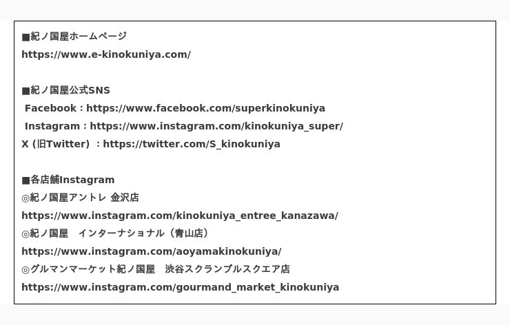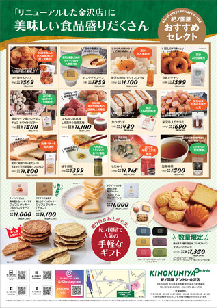 この度、より多くのお客さまに食を通じて紀ノ国屋のこだわりやクオリティを楽しんでいただけるよう、プライベートブランド商品を中心に、新たにお酒の取り扱いの他、贈り物やお土産に最適な商品をラインアップいたします。金沢エリアにお住まいの方や、近江町市場をご利用いただく観光客の皆さまにお喜びいただける品揃えで皆様のご来店をお待ちしております。