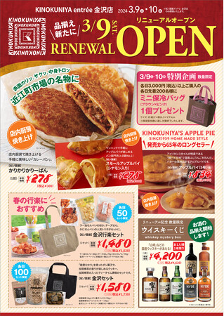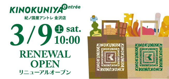 株式会社紀ノ國屋(本社:東京都新宿区)は、3月9日(土)石川県金沢市、近江町市場内の「紀ノ国屋 アントレ 金沢店」をリニューアルオープンいたします。
