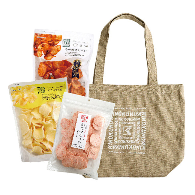 内容:ラー油せんべい、チーズせん、かにせんべい、金沢トートベージュ