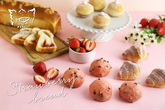 神戸メリケンパークのベーカリーカフェ「TOOTH TOOTH FISH IN THE FOREST」では、2024年3月11日(月)より期間限定でいちごを使った4種類の自家製パンが登場!