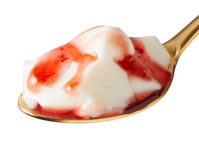 果肉入りのストロベリーソースは、まぜるたびにピンク色が広がり春らしさを演出します。