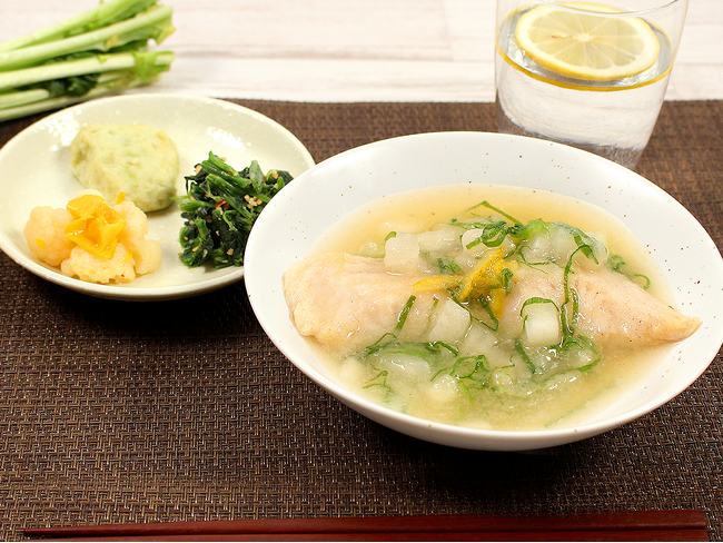 国産かぶらと白身魚の蒸し焼き