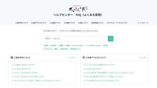 TayoriのFAQ機能を活用した「温泉山荘だいこんの花」のヘルプセンター実際の画面