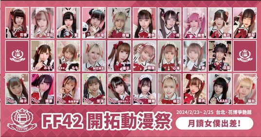 FF42「Fancy Frontier 開拓動漫祭」は、2024年2月23日から25日にかけて台北・花博爭艷館で開催された台湾最大の同人誌イベントです。台湾国内だけでなく日本からも多くのサークル、コスプレイヤー、アイドルが参加する大規模なイベントです。ツクヨミメイドカフェは、ブース出展とステージパフォーマンスを毎回行っており、今回のFF42でもツクヨミ全店舗とゲストを加えた総勢28名のメイドが参加しました。