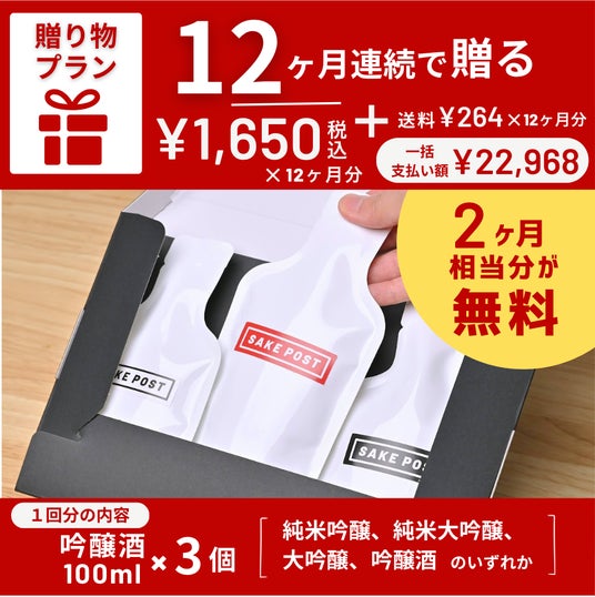 12ヶ月分を贈る吟醸酒100ml×3種類を12ヶ月連続でお届け