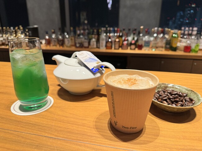 当ホテルでは、同日午後8時30分から午後9時30分まで、「Positive Darkness」をテーマにホテル外観サインを消灯、パブリックスペースの照明を減灯し、ご宿泊のお客さまにも客室の電気減灯にご協力いただくよう呼びかけいたします。減灯した空間だからこその名古屋の夜景をお楽しみいただけます。また、当日ホテルをご利用のお客さま限定で、このイベントのために考案した「サステナブルコーヒーフレーバードリンク Re.born」と「サステナブルモクテル オーシャン」をご提供いたします。近年、コーヒーの消費量は世界的に拡大していますが、気候変動により生産量の減少を引き起こすことが危惧されていることから、身近に感じていただけるコーヒーをテーマに選びました。昨年同様、アフタヌーンティーに使用する茶葉を再利用した環境に優しいモクテル(ノンアルコールカクテル)と、テイクアウトして客室でお飲みいただけるよう、竹からつくられ森林に優しいバンブーエコカップも併せてご用意いたします。地球に思いを馳せ、地球温暖化防止や環境保全について考えるきっかけとなる1日を皆さまにご提案いたします。
