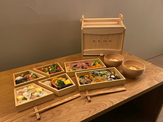 小豆島に古くから伝わるお弁当。割子弁当の「わりご」とは「農村歌舞伎」を見物する際に家族の弁当を入れていく木箱のこと。メニューにはオリーブをあしらった創作郷土料理をご提供いたします。小豆島の食文化を、香川のヒノキ材で作った自家製のわりごで召し上がれ。(協力:創作郷土料理 ?)