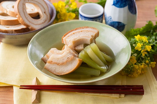 新潟名物の車麩と春の味覚、蕗を煮びたしに。滋味溢れる美味しさをお楽しみください。