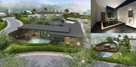 国内でも類を見ない800~1,000平方メートル (約300坪)のプライベートドッグラン、愛犬のためのスペースもあるプライベートプールが全室に備え付きます。茨城県の食材を使った2種のお食事、愛犬の健康を第一に考えたわんちゃん用のお食事、遊んだあとのわんちゃんがフワフワになれるセルフグルーミングルーム、新作バギーなどのわんちゃん用グッズの無料レンタル等、至れり尽くせりのサービスをご用意します。温泉ソムリエも推奨する黒褐色の自家源泉による客室内温泉や、茨城県産の食をたっぷり堪能できる2種のお部屋食など、飼い主様のリゾート滞在も充実するサービスを提供します。