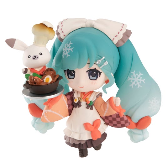 全高約6cmのデフォルメフィギュアのほか、ラバーマスコット・缶バッジのどれかが当たるガシャポンくじ。A賞は雪ミク2024デザインと雪ミク2012デザインの2種類をラインアップ!