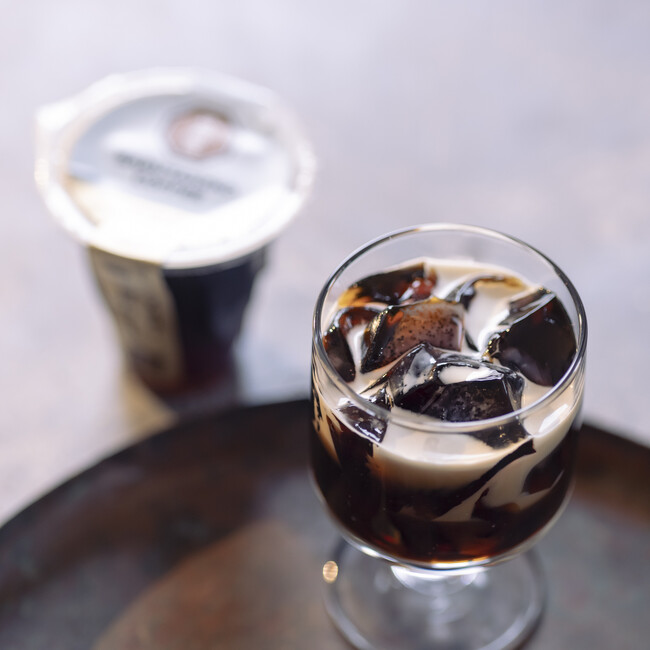 コーヒー豆、抽出方法にこだわった、コーヒー好きにはたまらない至極のコーヒーゼリーです。しっかり冷やしてそのままお召し上がりいただくのはもちろん、バニラアイスを添えたり、クラッシュしてから冷たい牛乳を注いでドリンク風にアレンジしてもお楽しみいただけます。
