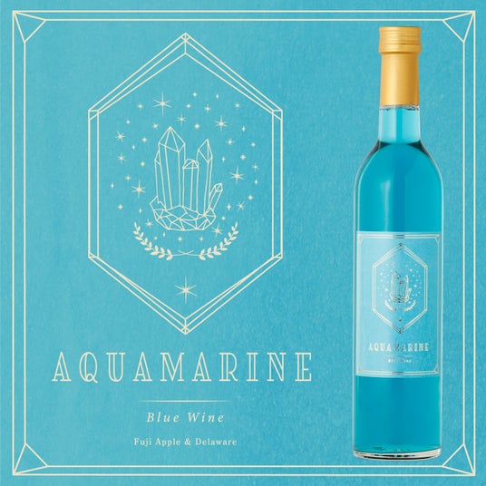 「アクアマリン」は、ラテン語で「海の水」を意味する宝石・アクアマリンをイメージした、青いフルーツワインです。海のような青色と、透き通った透明感から、多くの人に愛されてきた宝石であるアクアマリンのように青い液色は、グラスへ注ぐと透き通るように美しい青色でグラスを染め上げます。光に透かせばますます光り輝く様は、まさに宝石・アクアマリンそのものです。
