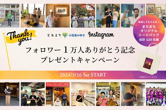 公式Instagram「まちまち│小田急の仲介」のフォロワーさまが1万人を達成したことを記念して、ご来店いただいた方に向けて、まちまちストーリーズオリジナルトートバックを合計120名さまにプレゼントする企画を小田急不動産の各店舗にて実施します。