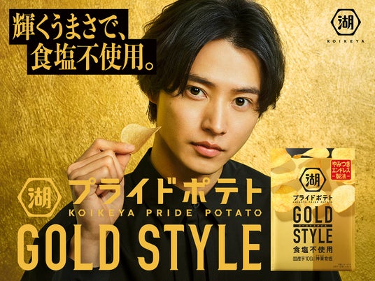 株式会社湖池屋(社長:佐藤 章)は、3月11日(月)に全国コンビニエンスストア、3月18日(月)に全国スーパーマーケット等一般チャネルで発売する新商品「湖池屋プライドポテト GOLD STYLE 食塩不使用」のイメージキャラクターを務める山崎賢人さんを起用した新TVCM「Gold Style Tasting 企業努力篇/難題篇/知恵篇」(各15秒)を、3月16日(土)から全国(一部地域を除く)で順次放映します。食塩不使用でありながらも輝くようなおいしさを実現した「GOLD STYLE 食塩不使用」 の味わいを訴求する本TVCMは、じゃがいものオブジェのような“芋神さま”が見守るゴールドの抽象空間で山崎さんが「GOLD STYLE 食塩不使用」を試食するシンプルなストーリー。“芋神さま”が発する天の声に「食塩を使用していない」ことを教えられた山崎さんがストレートな疑問を投げかけ、さらに“芋神さま”がユニークなひと言を返すというウィットに富んだ演出を採用しています。「GOLD STYLE 食塩不使用」 を自然体で味わい、演じることなく“素”のリアクションを見せる山崎さんのナチュラルな表情と、「CMでそんなこと言っても大丈夫なの?」と思わず心配してしまいそうな“芋神さま”へのストレートすぎる問いかけにご注目ください。
