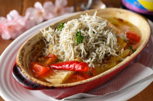 しらすの海の香りと甘み、みずみずしく柔らかい春野菜が楽しめるアヒージョ。